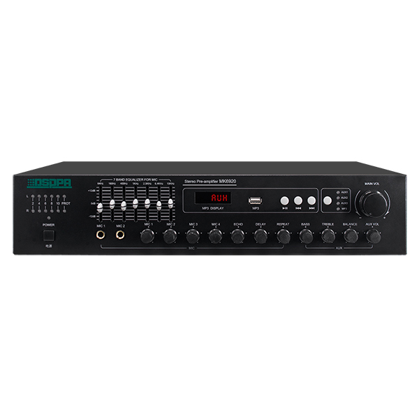 MK6920 2x120W Stereo Mixer Amplifier with 4 Mic & EQ ControlJuly 20, 2017MK6920 amplifier integrates balancing function and pre-amplifier and post amplifier.view